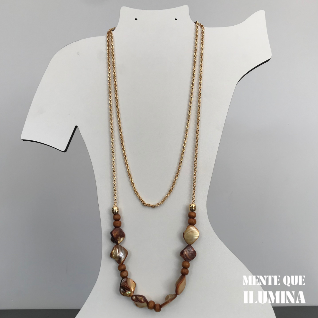 Colar duplo folheado a ouro 18k com Madrepérola de cor marrom.